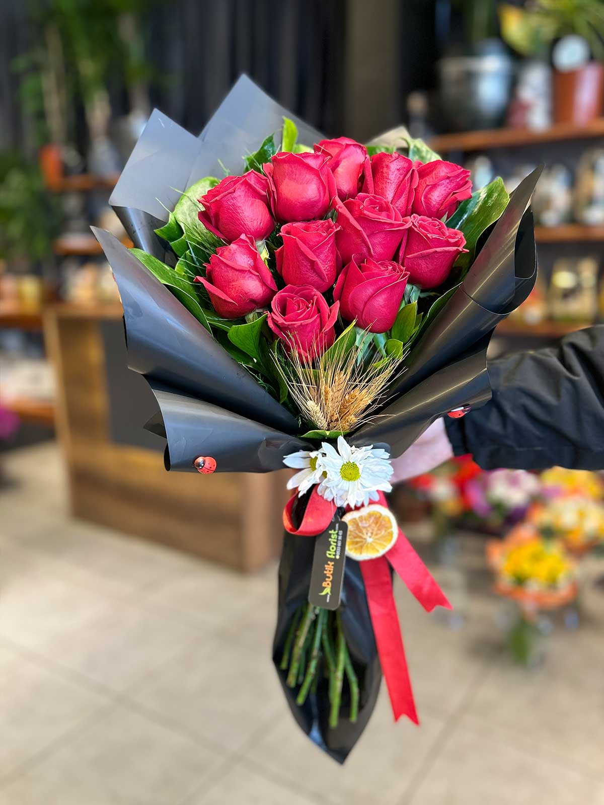 Bu özenle hazırlanmış 11 Kırmızı Gül buketi, sevdiğiniz kişiye olan derin aşkınızı ve tutkunuzu ifade etmenin en klasik ve etkileyici yoludur. Her bir kırmızı gül, sizi düşünen özel birinin kalbine dokunacak bir hikayeyi temsil eder. Sevgiliye kırmızı gül göndermek, yıldönümü, doğum günü ya da sadece bir tebessüm yaratmak için mükemmel bir seçenektir. Kırmızı gülün anlamı evrenseldir; aşk, tutku ve saygıyı simgeler. İster kırmızı gül buketi siparişi verin, ister sadece sürpriz yapın, bu göz alıcı buketle duygularınızı en içten şekilde iletebilirsiniz. Red Rose Bouquet, zarif beyaz fillerin ve şık kurdelelerin eşliğinde, aşkınızın zarafetini ve güzelliğini yansıtır.