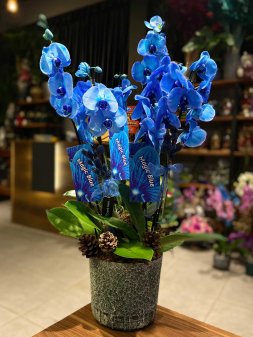 Silindir cam vazoda cipso ve yeşilliklerle süslenmiş