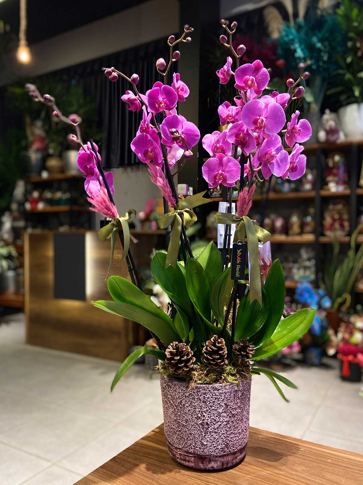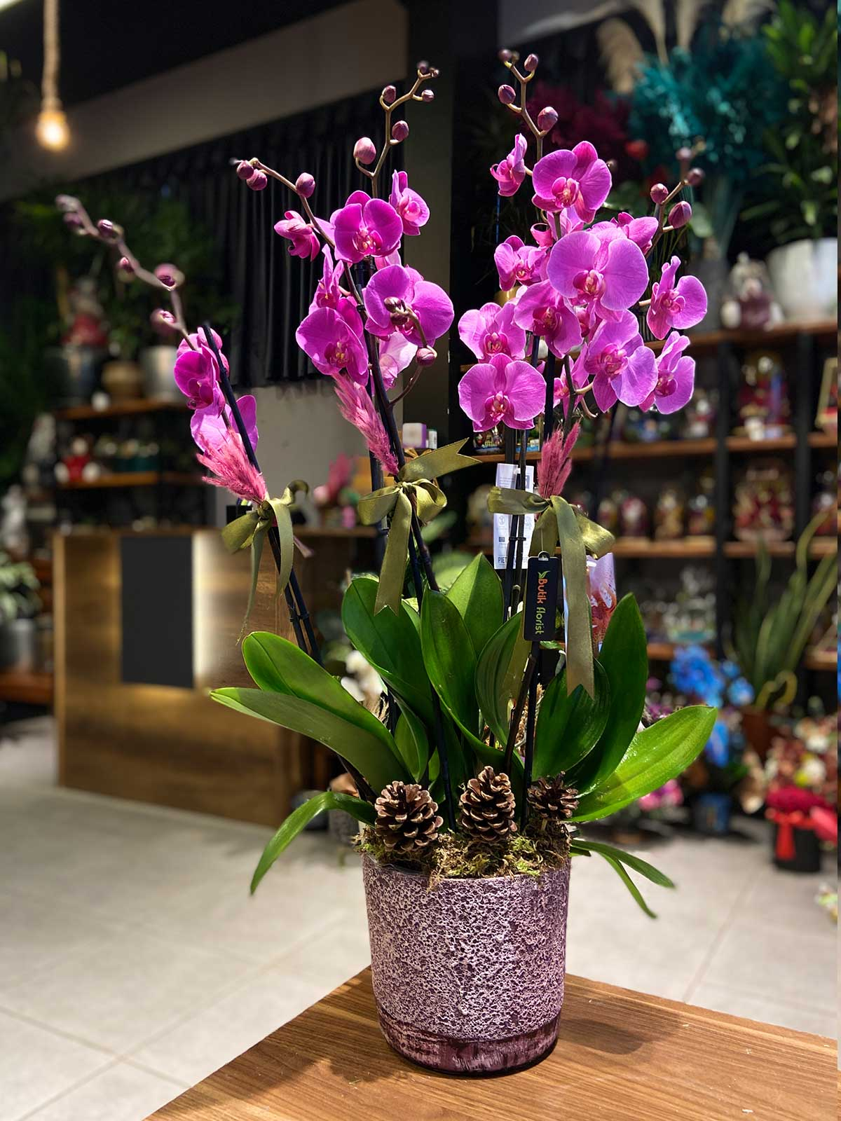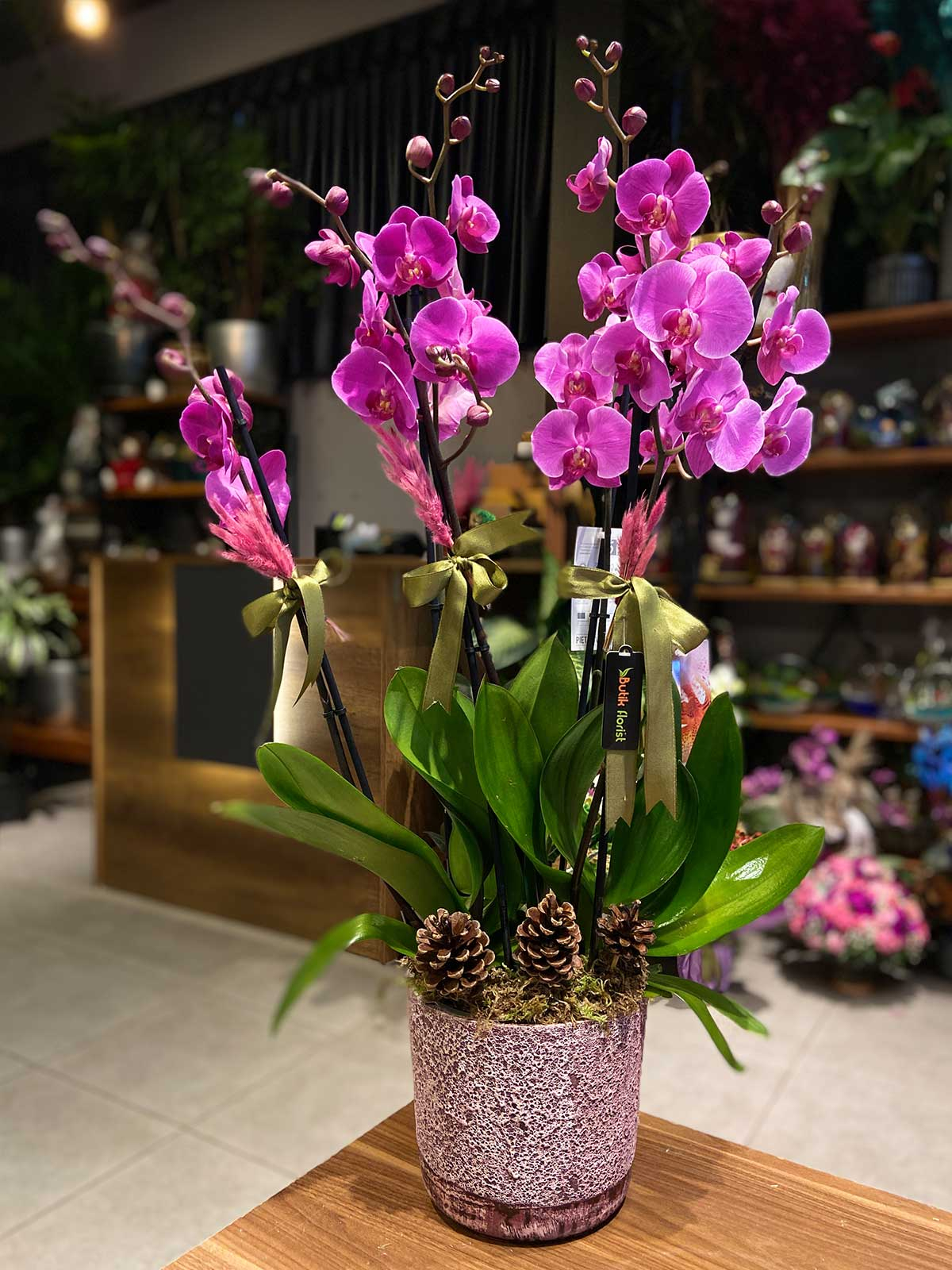 Seramik içerisinde yosun ve kozalaklarla süslenmiş üzerinde ki materyaller mevsimsel yada stok durumuna göre değişim gösterebilir.