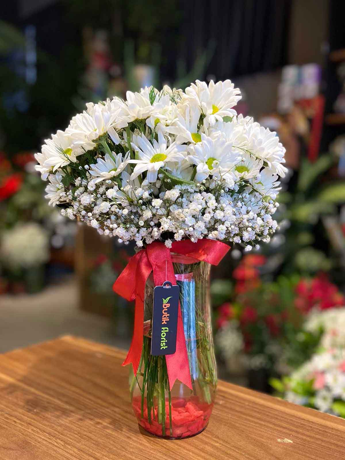 Cam vazoda beyaz papatya