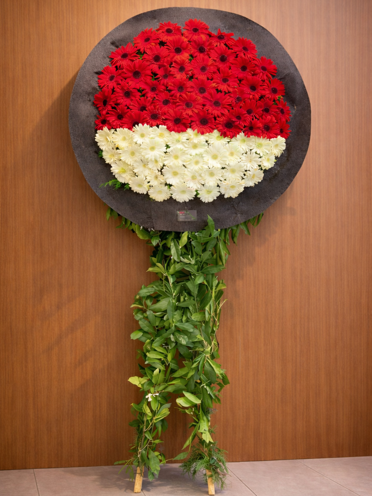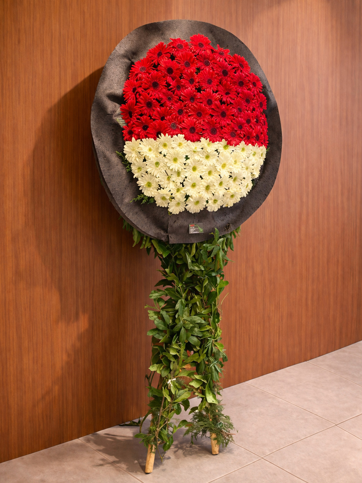 Sevdiklerinize son görevlerinizi en anlamlı şekilde yerine getirmek için bu özel tasarımı cenaze çelengini tercih edebilirsiniz. Kırmızı ve beyaz gerberaların uyumuyla özenle hazırlanan bu şık çiçek çelenk, cenaze törenlerinde duygularınızı en zarif şekilde ifade etmenize yardımcı olur. Canlı ve taze çiçeklerden oluşturulan tasarım, hem sade hem de dikkat çekici bir görünüm sunar.