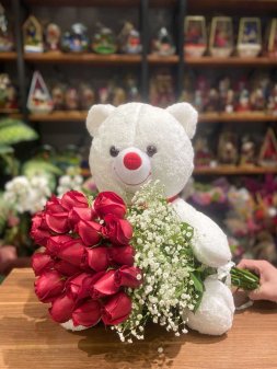 Peluş Ayılı 21 Kırmızı Gül
