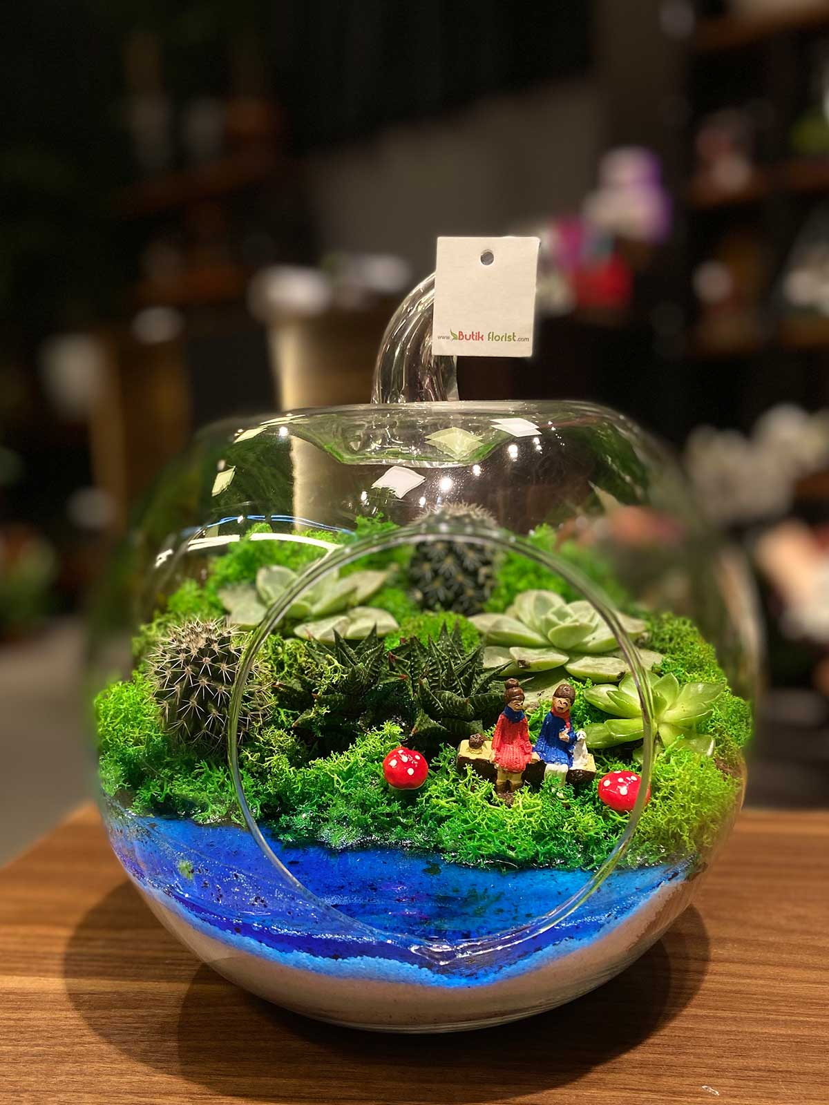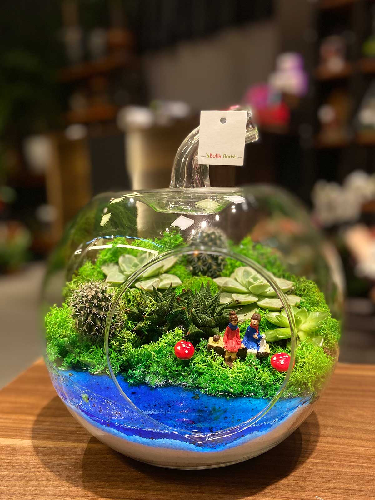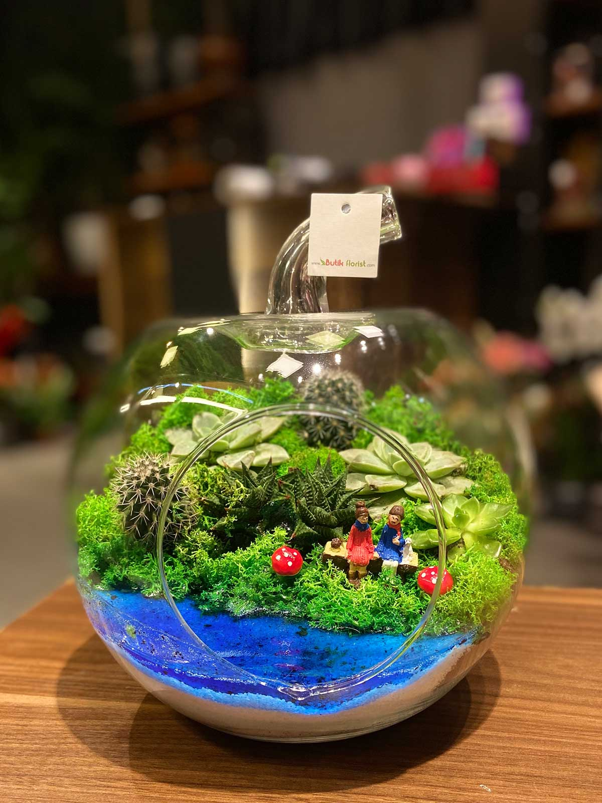 Canlı sukulentlerle ve jelle süslemiş