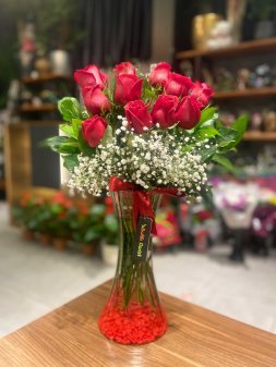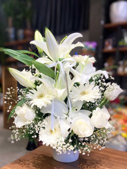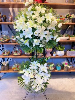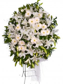 Beyaz Kırmızı Ayaklı Sepet Çelenk