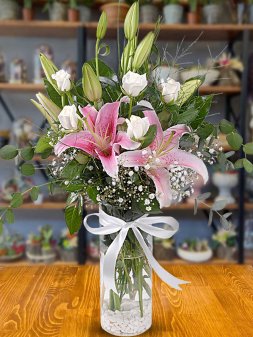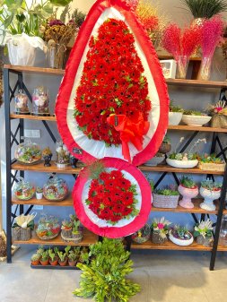 Çift Göbekli Kırmızı Beyaz Sepet Çelenk