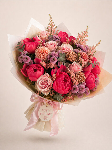 🌸 İthal ve premium kalite çiçeklerden oluşturulur