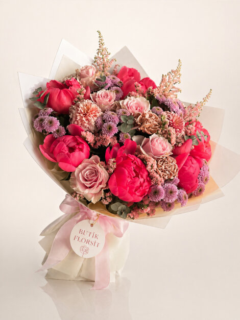 Özenle tasarlanan Lüks Pembe Çiçek Buketi, zarafet ve ihtişamı bir araya getiren premium bir aranjmandır. İçeriğinde yer alan 6 adet şakayık, 6 adet somon gül ve 8 adet ponpon çiçek, özel garnitürlerle tamamlanarak hacimli ve göz alıcı bir form oluşturur. Renk geçişleri ve çiçeklerin uyumu sayesinde hem romantik hem de sofistike bir görünüm sunar.
