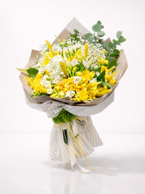 Sevdiklerinize sade ama etkileyici bir hediye sunmak istiyorsanız Sarı Beyaz Frezya Buketi tam size göre.