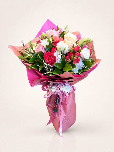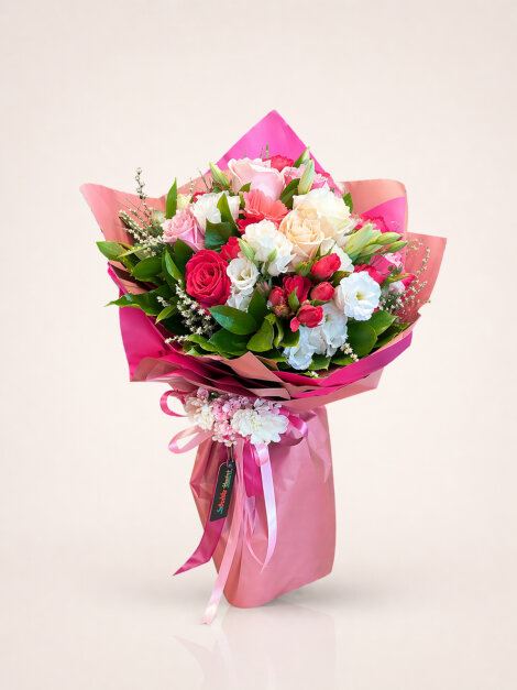 Ailelerin tanşması için hazırlanmıştır bu şık çiçek buketi, minyatür çiçeklerin uyumu.