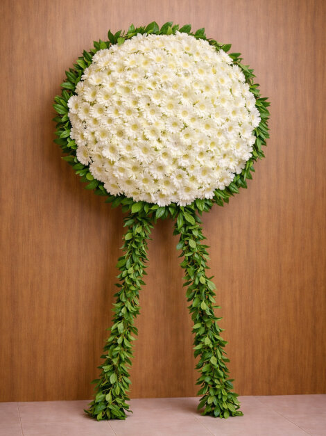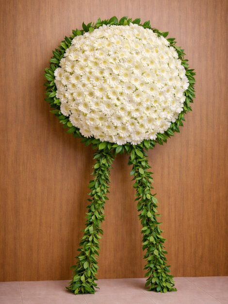 Özenle seçilmiş taze çiçekler kullanılarak hazırlanan bu özel çelenk, dengeli formu ve dikkat çekici görünümüyle bulunduğu ortamda fark yaratır. Kaliteli işçilikle hazırlanan VIP çelenk modeli, standart çelenklerden daha dolgun ve estetik bir yapıya sahiptir.